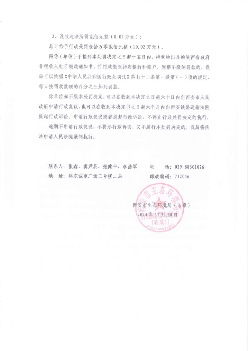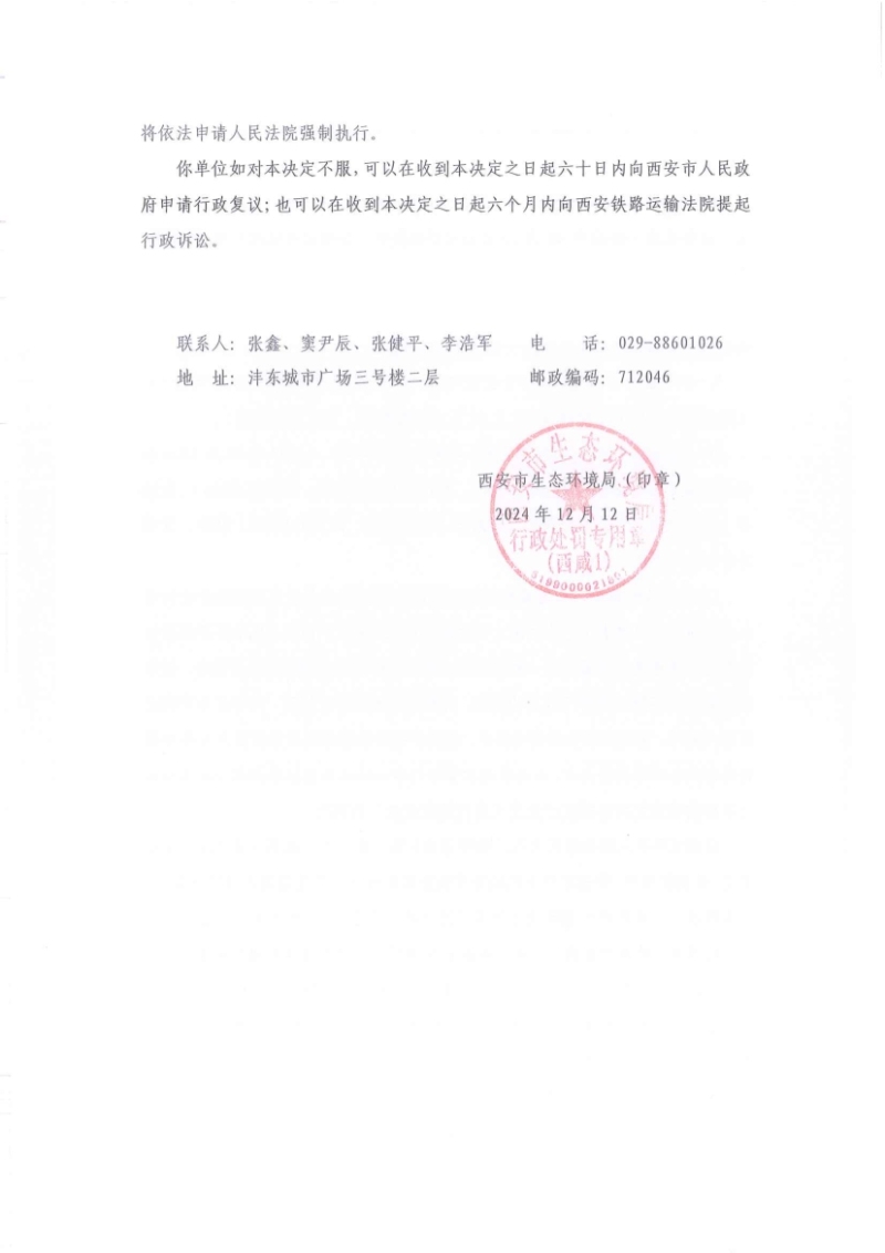 西咸新区生态环境局(沣东)工作部生态环境行政处罚和行政命令公示