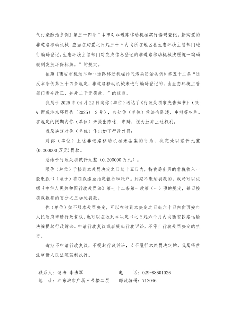 西咸新区生态环境局(沣东)工作部生态环境行政处罚和行政命令公示