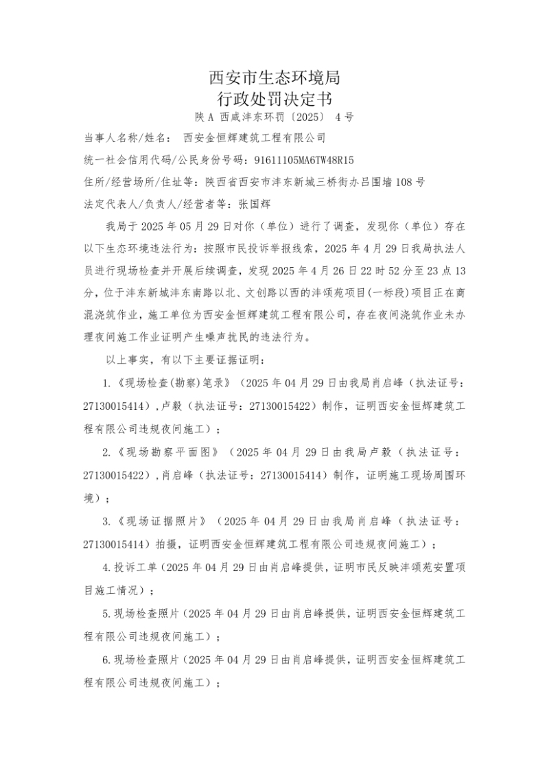 按照《环境信息公开办法(试行)》和生态环境部有关要求,西咸新区生态环境局(沣东)工作部依法公开2025年西安金恒辉建筑工程有限公司责令改正违法行为决定和行政处罚决定信息。
