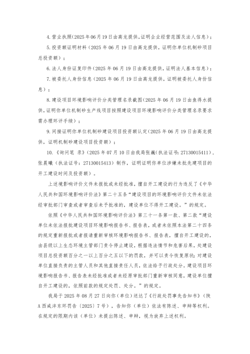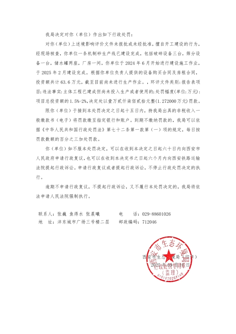 西咸新区生态环境局(沣东)工作部生态环境行政处罚和行政命令公示