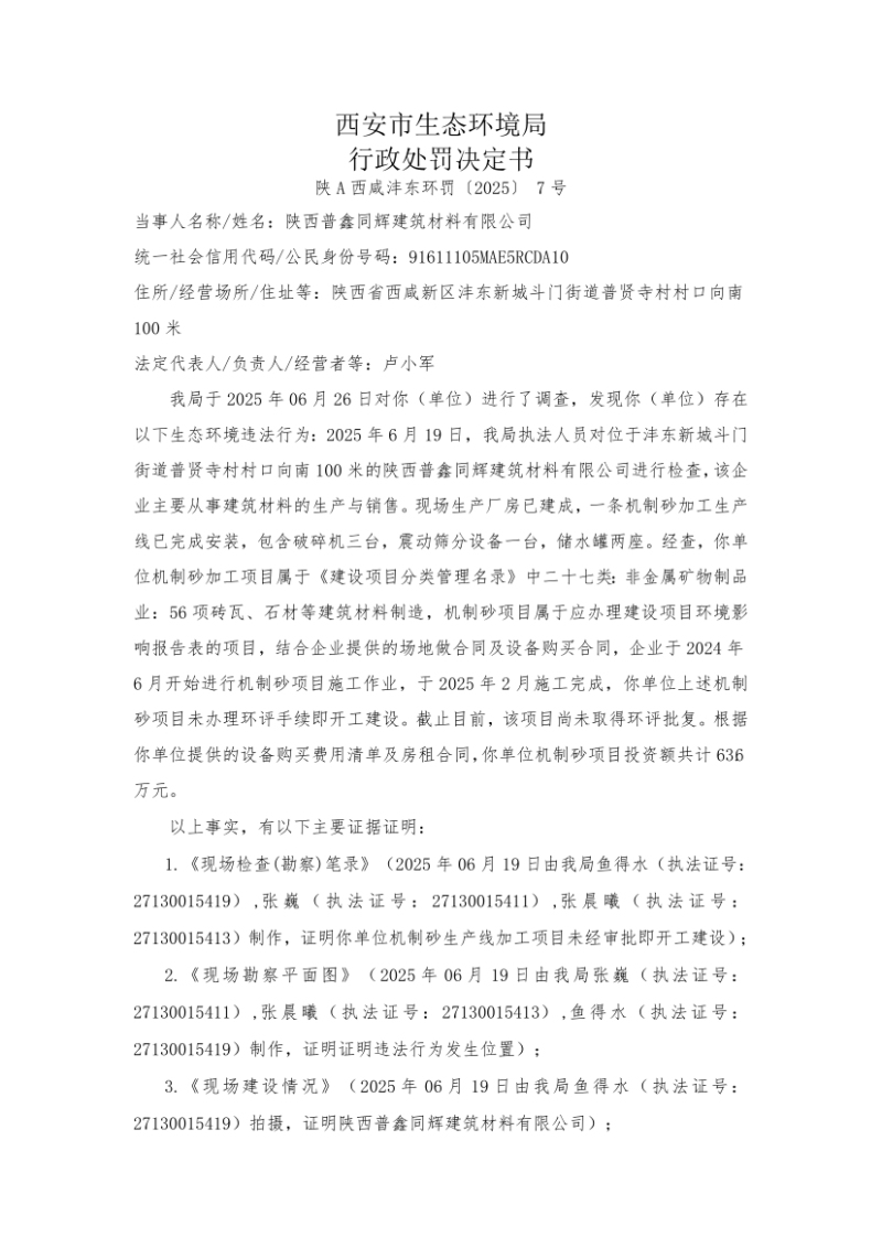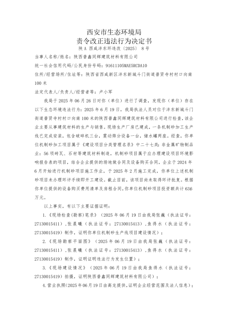 按照《环境信息公开办法(试行)》和生态环境部有关要求,西咸新区生态环境局(沣东)工作部依法公开2025年陕西普鑫同辉建筑材料有限公司责令改正违法行为决定和行政处罚决定信息。