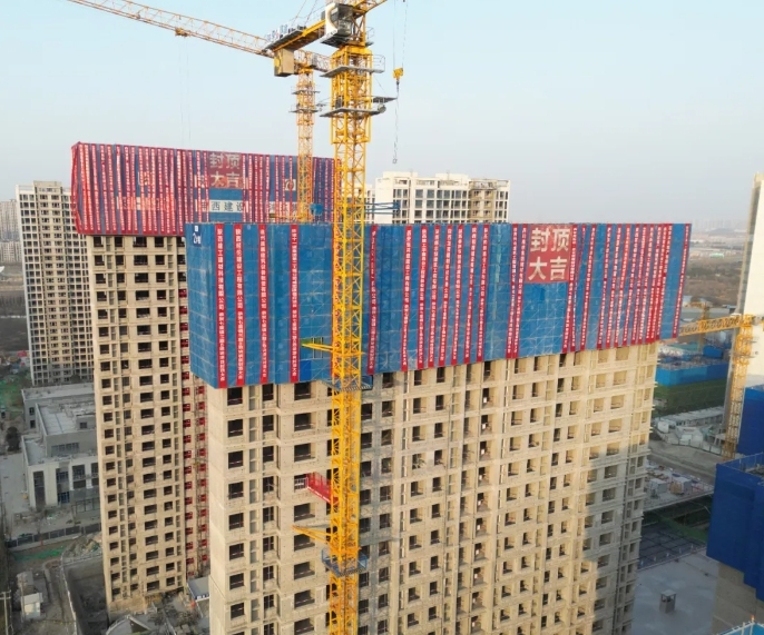 近日,沣东新城七里镇三期B地块项目1#、2#楼主体结构顺利封顶,项目建设进度进一步加快。
