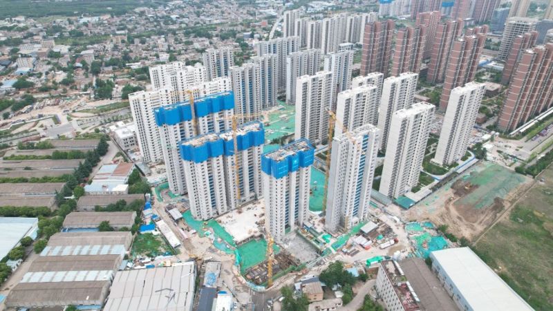 目前,项目A地块1#、3#楼及B地块4栋楼、C地块3栋楼已封顶,A地块2#楼主体结构施工至15层(共26层),车库主体结构全部完成。已封顶楼栋正在进行二次结构施工及车库负一层管道、风管等施工,项目公司将继续加快施工进度,严格落实质量管理要求,全力保障项目高质量完成。