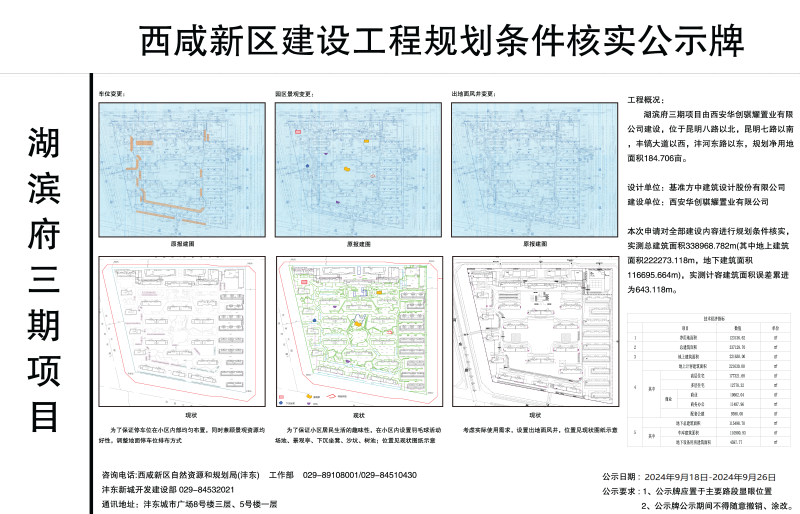 根据西安市自然资源和规划局《关于加强建设工程规划条件核实管理工作的通知》,现将湖滨府三期建设工程规划条件核实情况予以公示。批前公示并非最终审批结果,在公示期内,利害关系人若有意见,可来电向西咸新区自然资源和规划局(沣东)工作部、沣东新城开发建设部反映。