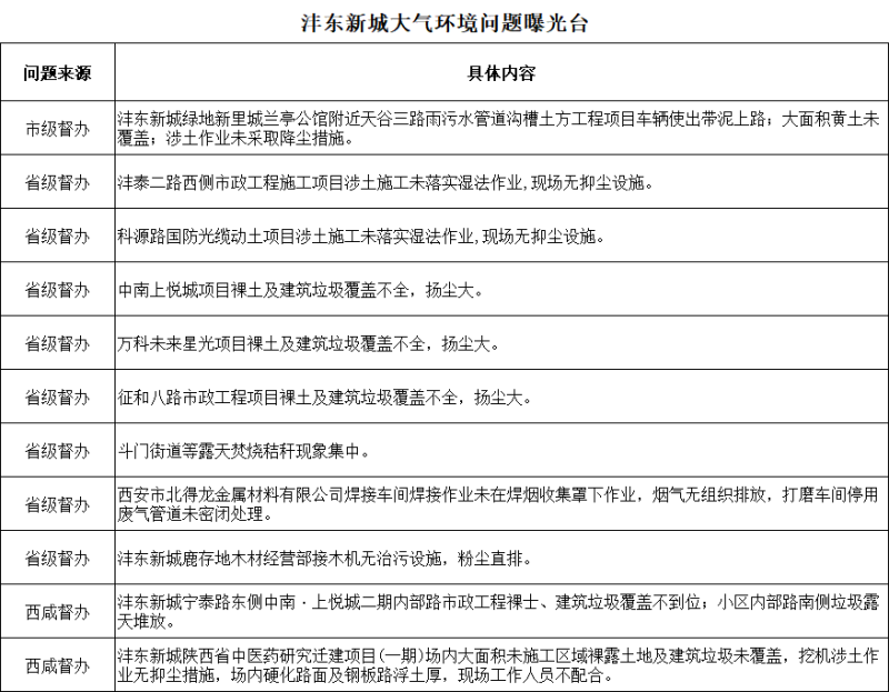 沣东新城大气环境问题曝光台(第十八期)