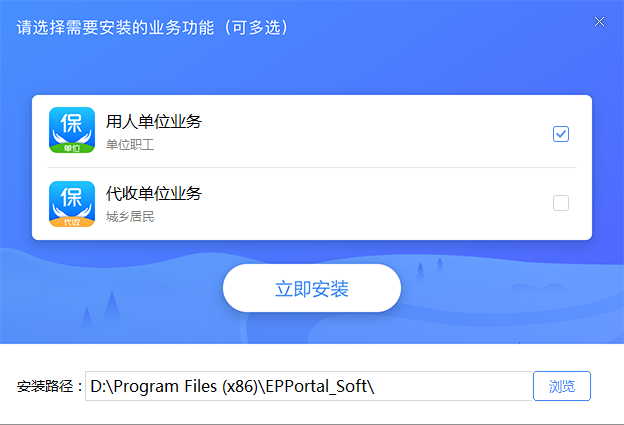 下载完成后点击“立即安装”或者选择“自定义安装目录”安装客户端软件,软件安装完成自动在桌面生成社保费管理客户端快捷方式。
