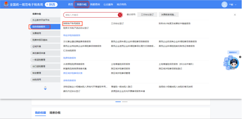 1、登录“陕西省电子税务局”,点击【我要办税】--【综合信息报告】--【制度信息报告】--【存款账户账号报告】--点击【新增账户】;