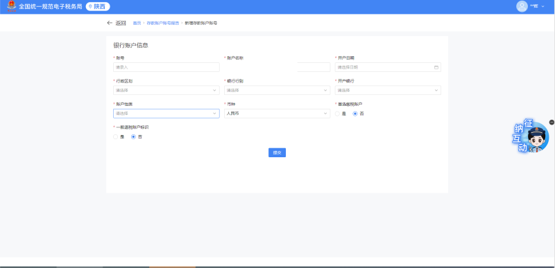 2.根据公司在银行开户信息进行填写,行政区划需选择开户银行所在的“省-市-区”)。
