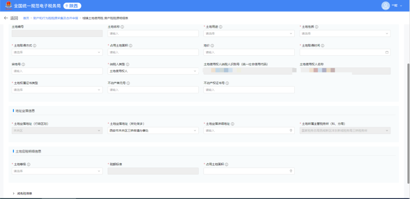 1.登陆“陕西省电子税务局”,点击【我要办税】--【税费申报及缴纳】--【财产和行为税税源采集及合并申报】;