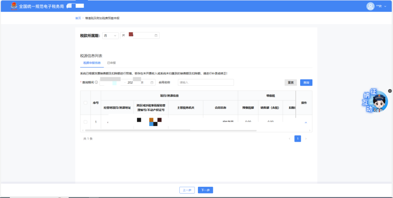 3.系统自动带出纳税人所有主体的税源信息,纳税人自行选择进行预缴申报;