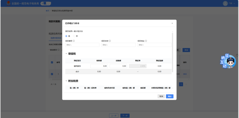 4.在弹窗中调整销售额等数据,自动计算附加税费等信息;