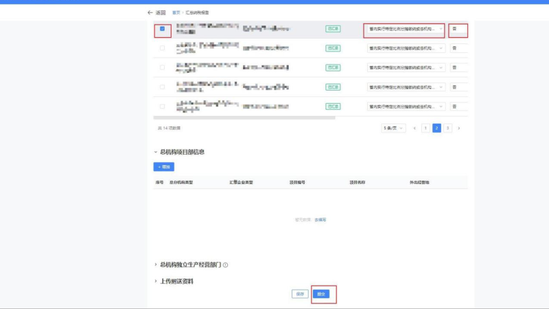 3.增加汇总纳税报告并提交:点击【增加】或【去填写】,可勾选需新纳入汇总纳税的分支机构并补充相关信息,还可增加总机构项目部信息,确认无误,点击【保存】或【提交】即可。注意:纳税人提交增值税、消费税汇总纳税时,需等待税务机关审核。可通过【我要查询】-【涉税信息查询】-【涉税进度查询】查看审核结果。