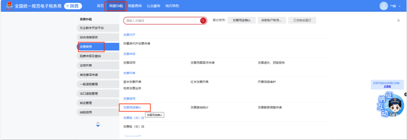 1.登录“陕西省电子税务局”,点击【我要办税】--【发票使用】--【发票用途确认】。