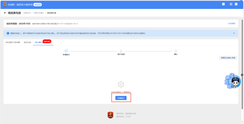 4.点击【申请统计】--【提交】,勾选统计完成后进入申报表申报。