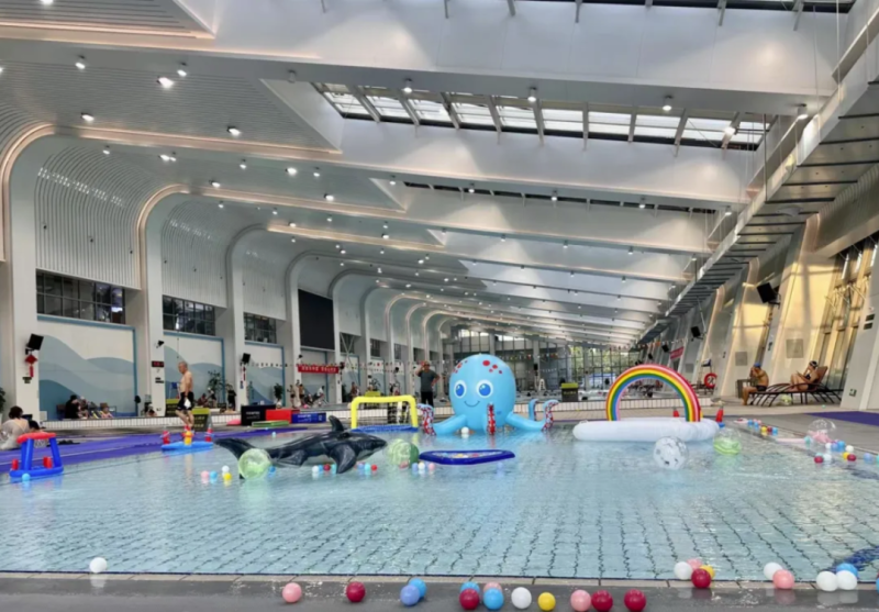 更绝的是“黑科技”加持:地下120米地热能系统,让池水常年稳在28℃,冬夏入水都舒服;下午阳光透过玻璃天窗洒进泳池,波光粼粼超出片,运动、打卡两不误。