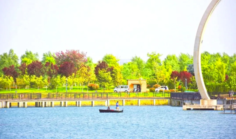 藏在秦汉新城18公里黄金岸线西段的渭河湖泊湿地公园,是新区滨水休闲的“颜值”代表:29.3万平方米生态水面、57.1万平方米林地草坪,14座亲水栈道、观景平台,满满“滨海度假”的既视感。