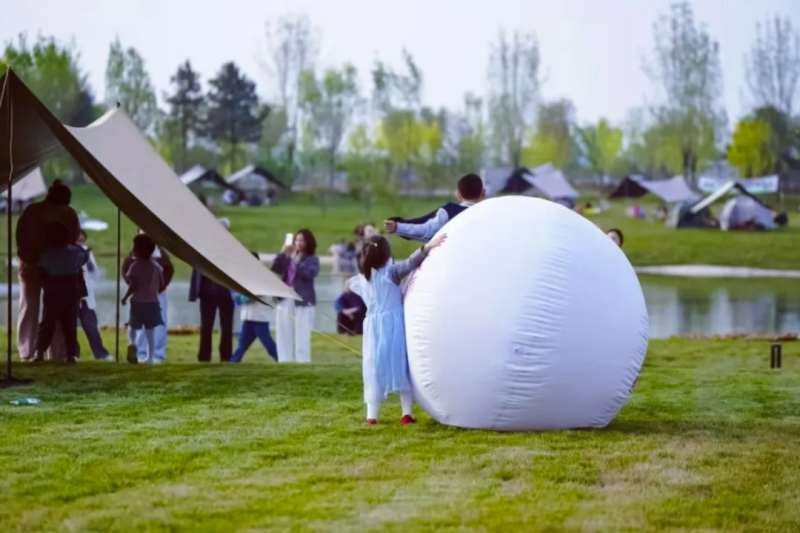 带娃家庭别担心:这里配有专属儿童足球场,还有无动力儿童乐园;逛累了去湖畔知意营地,草地露营、小火车、垂钓、桌游任选,入夜住透明星空帐篷,湖风拂过超惬意。