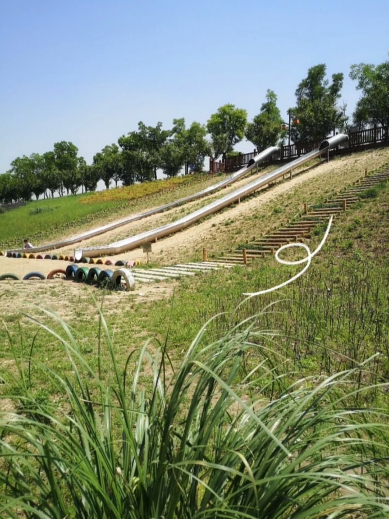 风雅杨林的每个小角落都被精心设计过,草坪、杨树、花朵一步一景都透着舒服的秋日气息,园内还有儿童乐园,小朋友可以在这里滑滑梯。虽说园区的步道偏狭长,逛完得花上小半天但沿途的风光绝不会让你感到无聊。