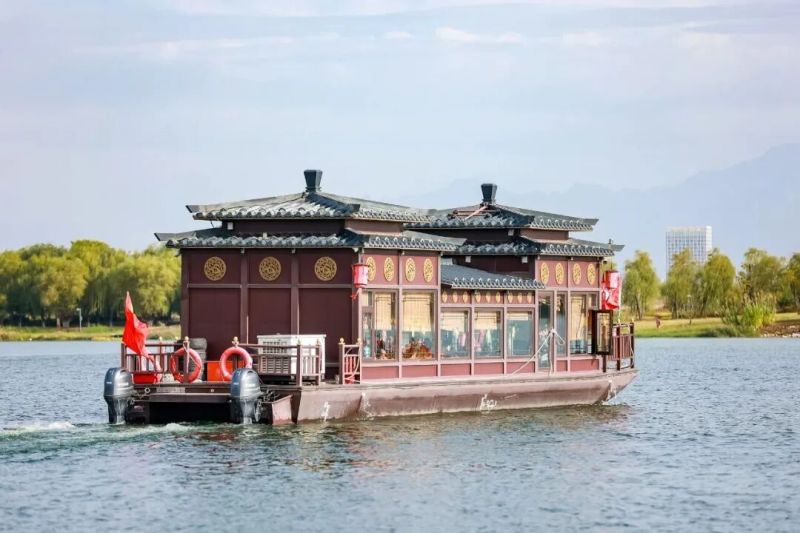 傍晚19:00后别着急走!雨雾未散时,橘粉色夕阳会穿透云层洒在船身,仰拍能同时捕捉船舷与晚霞的画面,搭配浅色系长裙,随手拍出古风电影感海报。