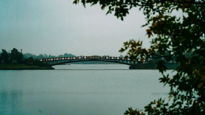 雨后初歇的16:00-17:00是黄金时段!站在湖东侧以鹊桥为前景,让湿润的绿植框住桥身,水面倒影与实景对称成 “双银河”,用手机低角度拍摄,连雨珠坠落的涟漪都成了天然滤镜。