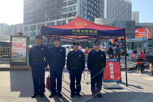 为全力做好“中秋”“国庆”节日期间辖区的消防安全保卫工作,切实提高社会单位与群众的消防安全意识,预防火灾事故的发生,9月29日,天台八路消防救援站在人员密集场所“万象城”及周边开展前置执勤、巡检巡查工作,扎实做好防火、宣传、执勤保卫工作。