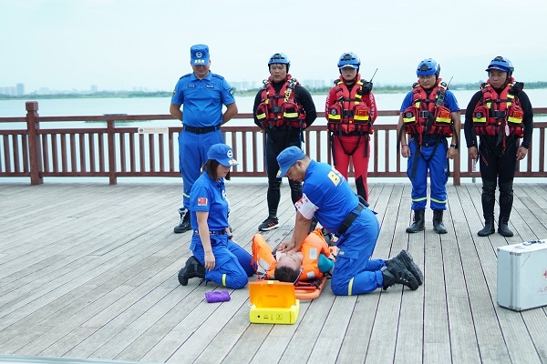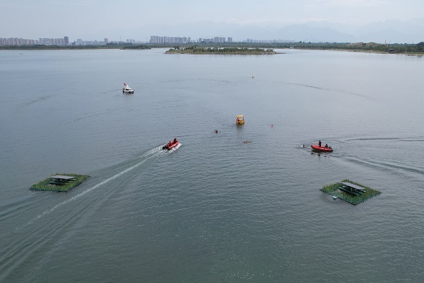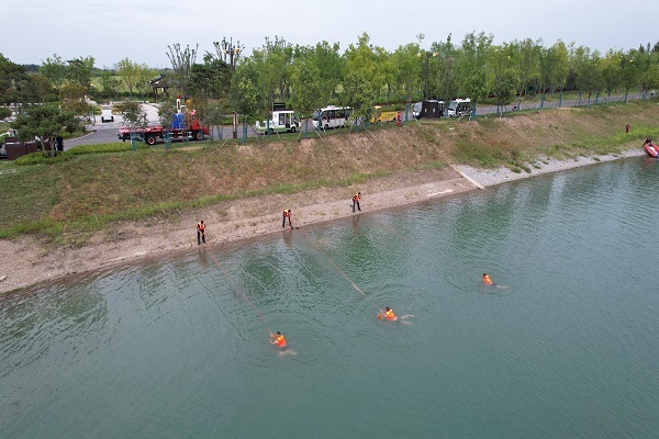为全力做好防汛排涝救援准备工作,检验水域救援力量实战能力。9月6日,沣东新城消防大队联合昆明池景区、西咸新区公安局治安大队、蓝天救援队在昆明池水域开展水域救援应急演练。