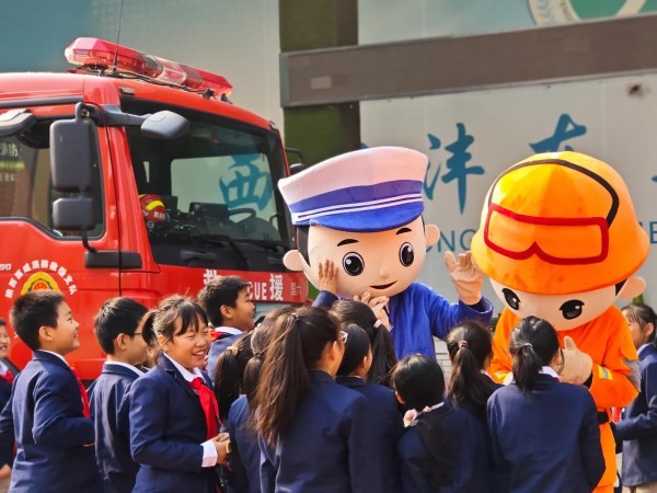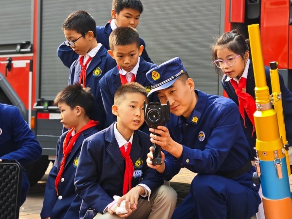 消防员详细介绍了消防安全基本知识,教给学生如何拨打报警电话、快速自救逃生等方法。消防员将消防器材、消防装备一一呈现在学生面前,讲解了消防器材的各项功能,并演示了正确的操作方法,邀请学生们亲身体验,消防玩偶也与学生们一同互动,让学生们在欢乐的氛围中学习消防知识。学生们还绘制了消防安全手抄报,张贴在教室楼道,营造了浓厚的消防学习氛围。
