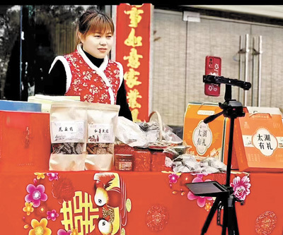 | 安徽安庆太湖县,工作人员在进行电商直播。 资料图片 |