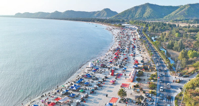 | 广东汕尾陆丰市,金厢银滩游人如织。 黄浩阳摄(人民视觉) |