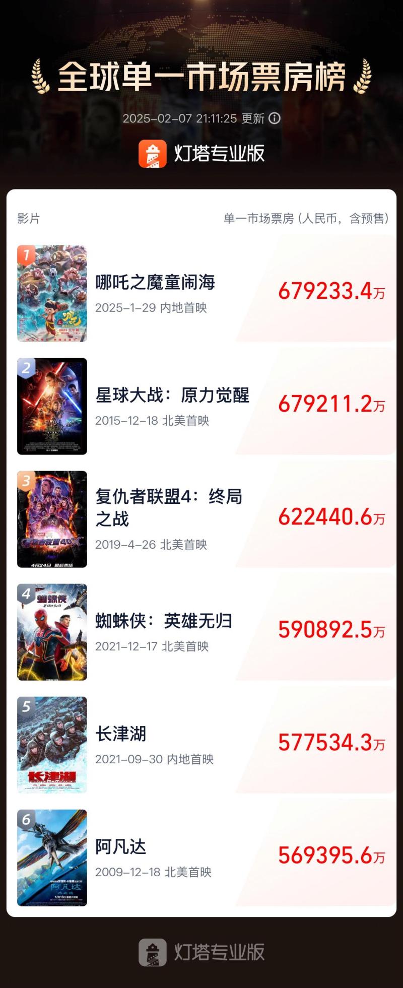 电影《哪吒之魔童闹海》登顶影史全球单一市场票房榜