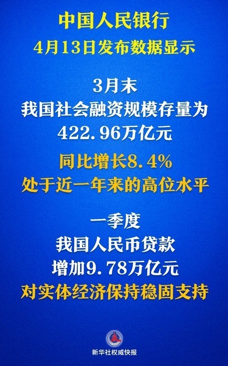 新华社北京4月13日电题:社融增量超15万亿元!金融“活水”激发经济活力