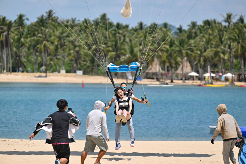 5月2日,游客在三亚塔赫跳伞基地体验跳伞。新华社记者 郭程 摄