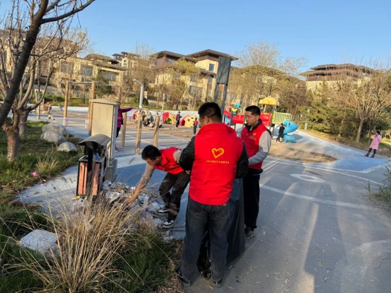 11月28日,沣东集团及地产公司志愿者们前往汉溪湖公园,开展义务清扫、环境保护志愿服务活动。